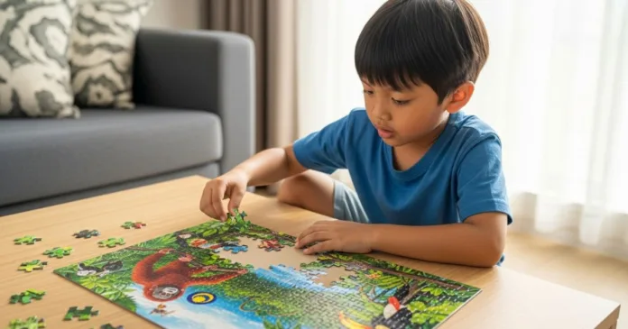 Setiap kali satu keping puzzle berjaya dicantumkan, otak pun dapat rangsangan baru. Lagi besar puzzle, lagi puas hati bila siap! Aktiviti permainan kanak-kanak seperti puzzle ni memang bagus untuk bina fokus.